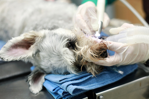 We recommend regular dental checkups and cleanings at least every 1 to 2 years in most cases. Some pets, however, require more frequent cleanings. Our veterinarian and caring staff will teach you how to care for your pet’s teeth in between cleanings including brushing their teeth and supplying them with oral hygiene chews. Regular brushing combined with a proper diet and supplements can greatly decrease your pet’s risk for dental disease. Remember that prevention of periodontal disease is less expensive and more effective than treatment later in your dog or cat’s life.